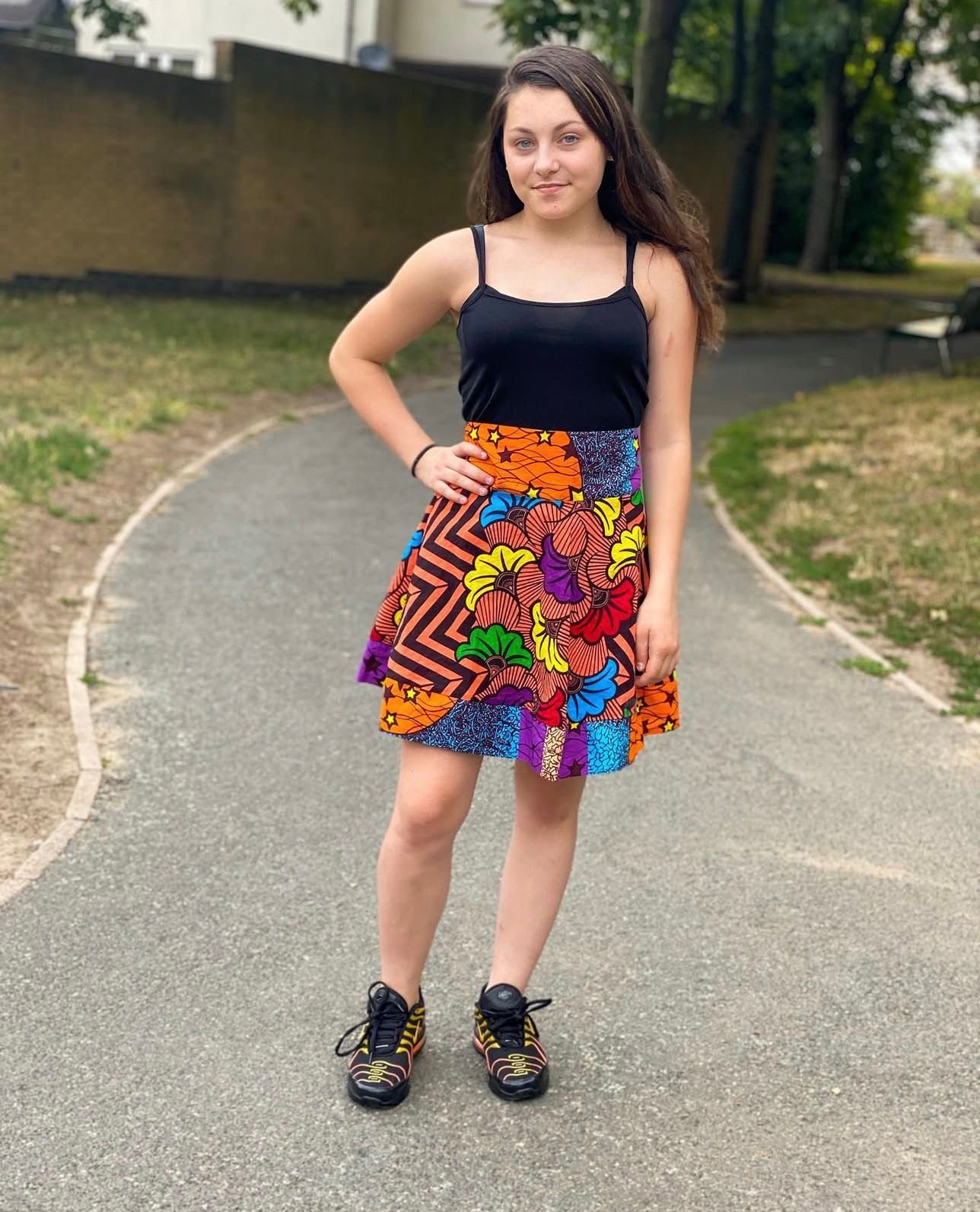 Add a pop of colour to your wardrobe with this beautiful African print skirt. Featuring a bold, vibrant pattern, this skirt is perfect for casual outings, summer events, or dressing up with your favourite top.